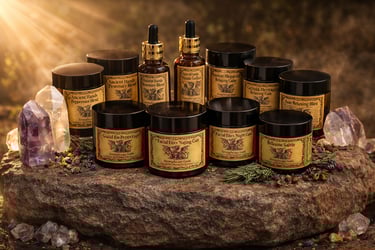 Following the forbidden alchemy of the Middle Ages, we infuse our elixirs with raw crystals, awakening the energy of the earth's deepest stones. Every drop undergoes a distillation ritual — a trial by fire and glass — before being blended in a sacred, ancestral order to forge a compound that does more than touch the skin. It mends the soul.