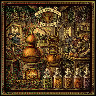 After distillation, the Master Pepperer blended the refined oils in a precise, secret order. These were not mere scents — they were healing compounds designed to mend the body and brighten the spirit.