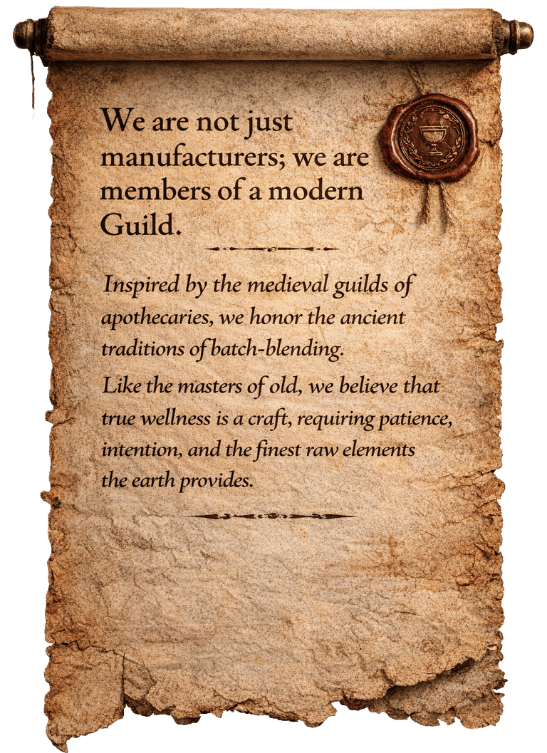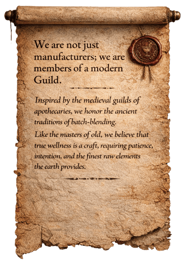 Following the path of the medieval master craftsman, every vessel we fill is a masterpiece of purity. We seek the most natural elements - those once known as "portable wealth" - to ensure your spirit is anchored in the divine.